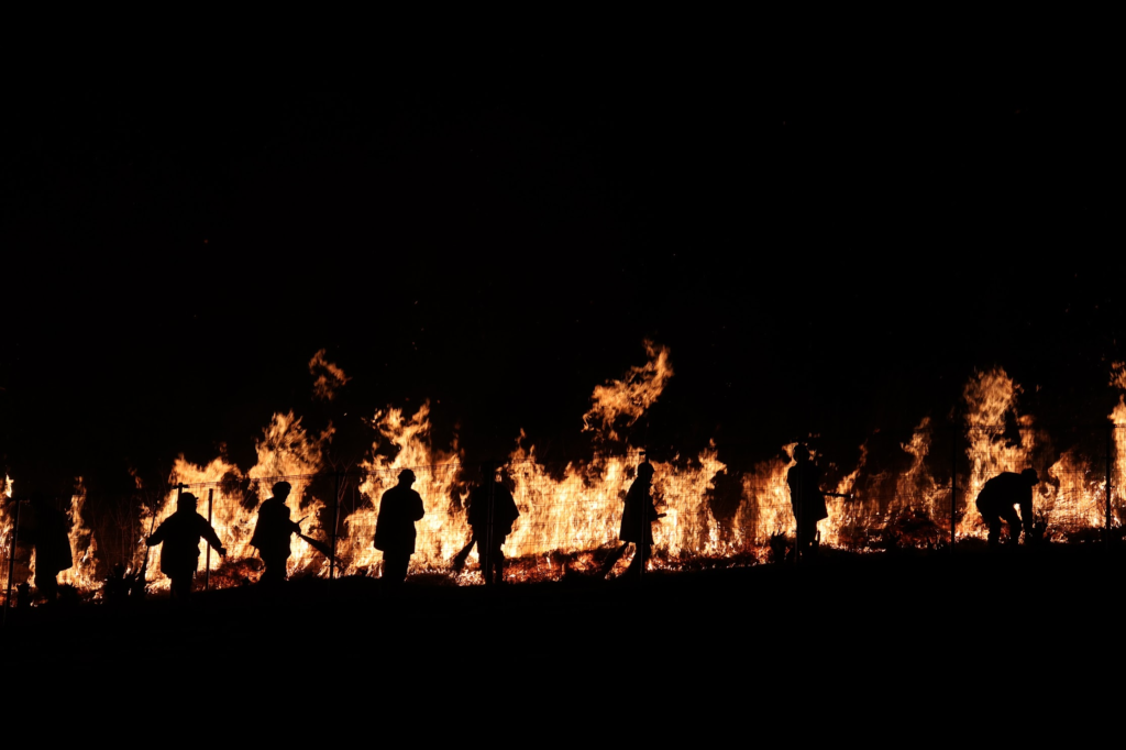 特筆すべきは、奈良県内では珍しい「尺玉(10号玉)」が打ち上げられる点です。全国から集められた選りすぐりの花火が、山焼きを待つ観客の期待を最大限に高めます。花火の光と音が静まると、法螺貝の合図とともに山に一斉点火。夜空を焦がす炎と、その直前に夜空を彩った花火のコントラストは、まさに圧巻の一言。この一連の流れ全体が、一つの完成された体験となっています。